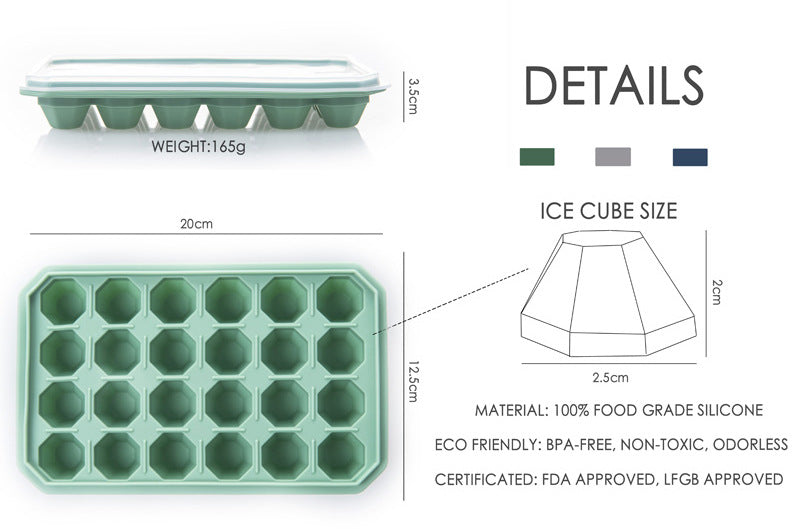 Looking for a convenient and efficient way to make ice cubes? Look no further than our 24 grid ice mold! Made from high-quality silica gel, this ice mold is durable and safe to use. With a product size of 20cm * 12.5cm * 3.5cm and weighing only 165g, it is compact and lightweight, making it easy to store and carry around.