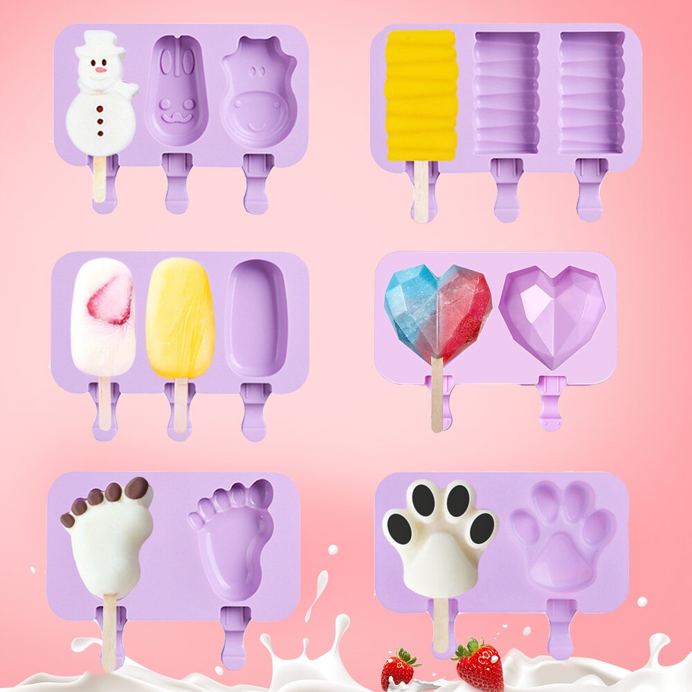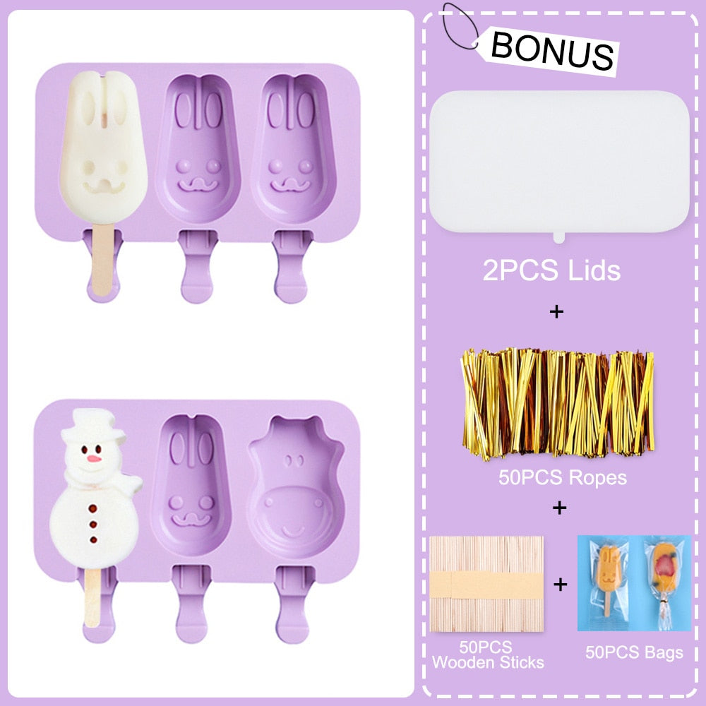 Cartoon Kids Ice Cream Mold With Lids Silicone DIY Making Mold