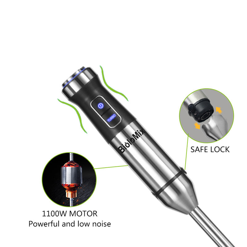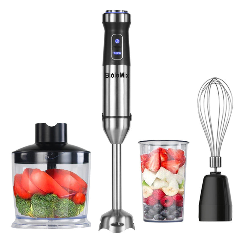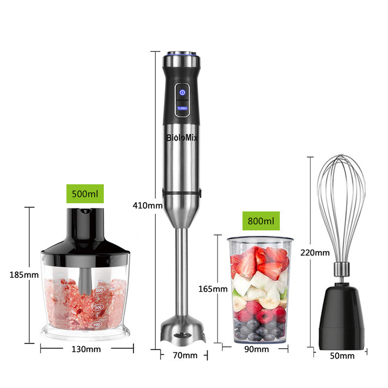 When you purchase our Food Stick Meat Grinder, you will receive a comprehensive package that includes everything you need for a seamless cooking experience. The package includes a hand blender, a 500ml chopping bowl, an 800ml blending beaker, a whisk, and an English manual.