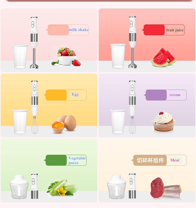 You can squeeze juice, cut meat, make complementary foods, stir eggs, stir other foods, and a machine can be used for many purposes.