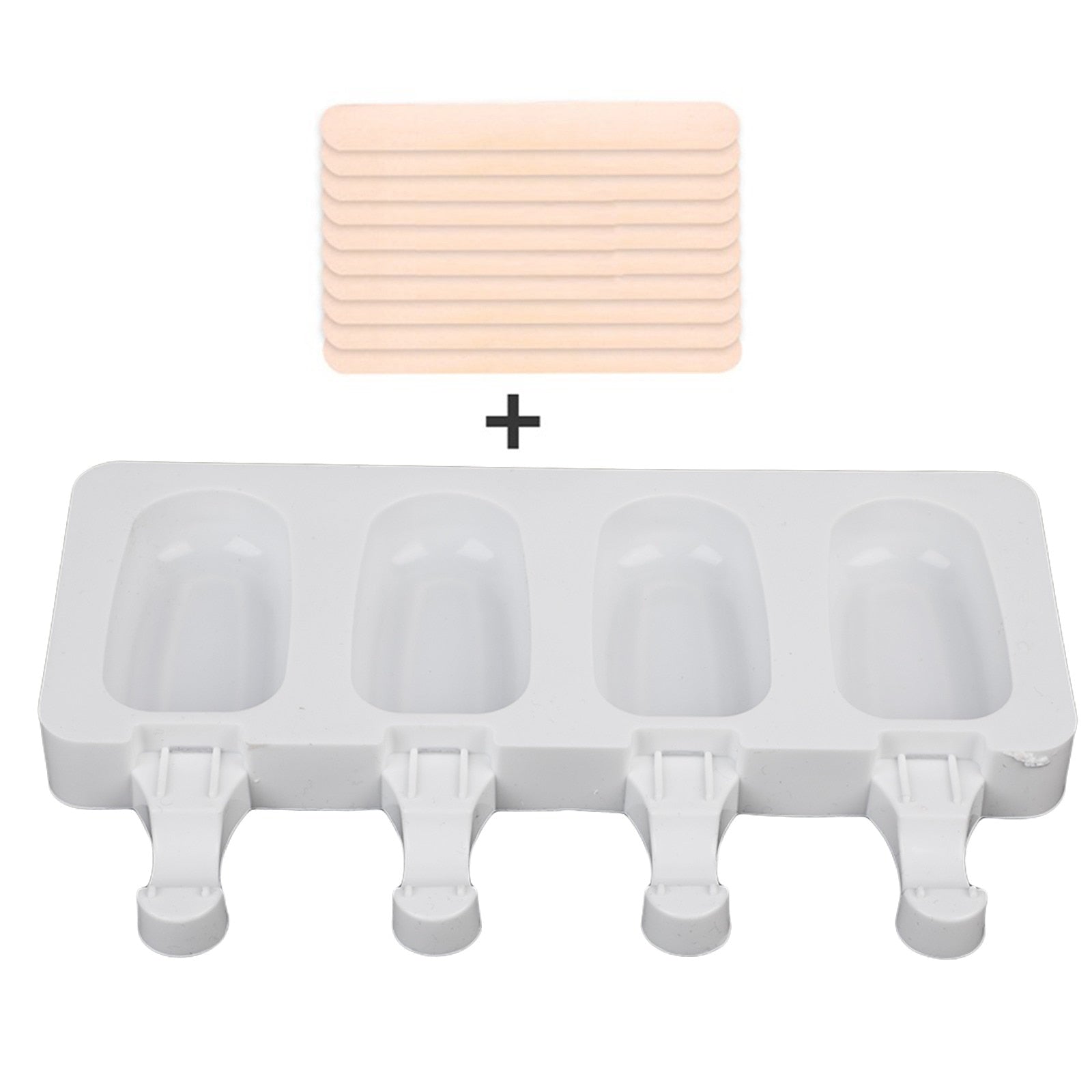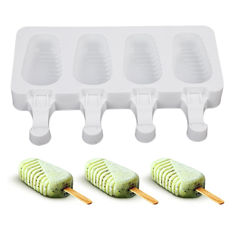 24hShip Silicone Ice Cream Molds 4 Cell Ice Cube Tray Food Safe Popsicle Maker DIY Homemade Freezer Ice Lolly Mould Home Kitchen