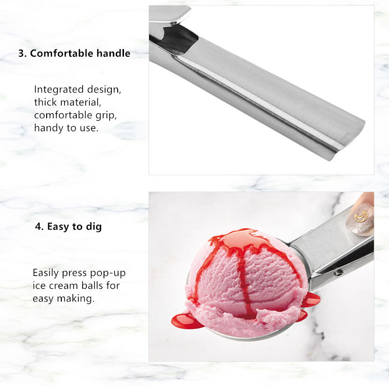 Indulge in the art of creating perfect ice cream delights with our Stainless Steel Ice Cream Scoop Stack. This non-stick wonder is not just an ice cream digger; it's a versatile tool that adds a touch of elegance to your dessert presentations. Crafted from high-quality stainless steel, this ice cream scoop is a durable and safe choice for handling food, ensuring a rust-free and long-lasting experience.