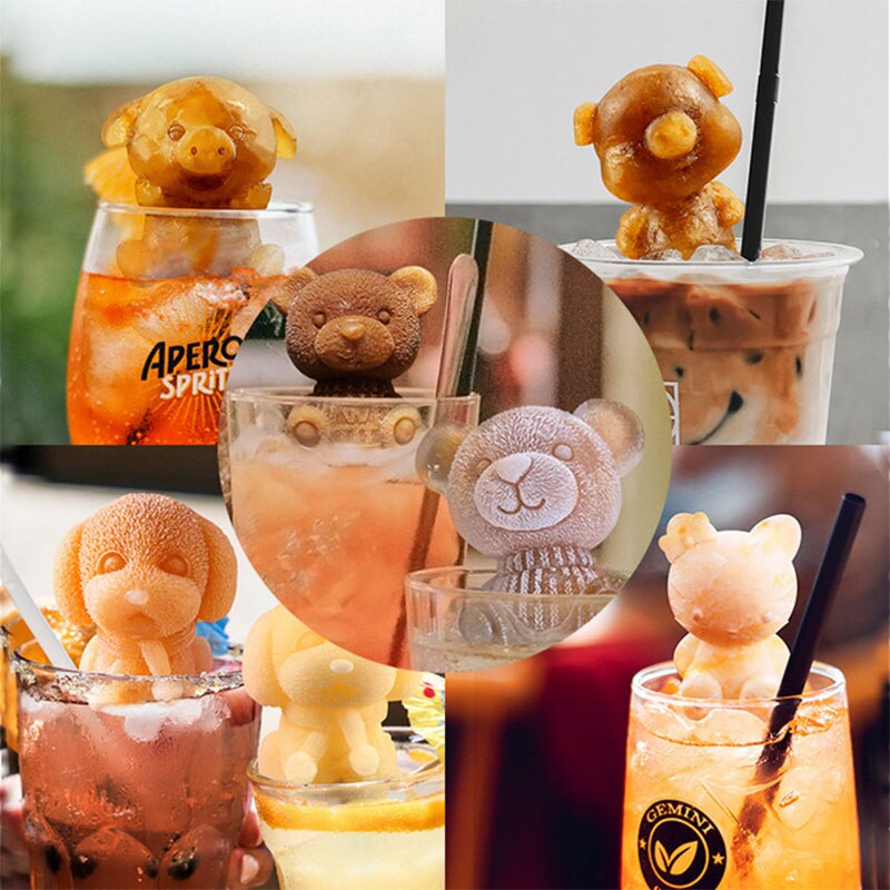 Ice Cube Mold Silicone Cute Animal Ice Cube Mold Abrasive 3D Ice Cube Mold Bear Mold Silicone Creative Coffee Milk Tea Ice cube