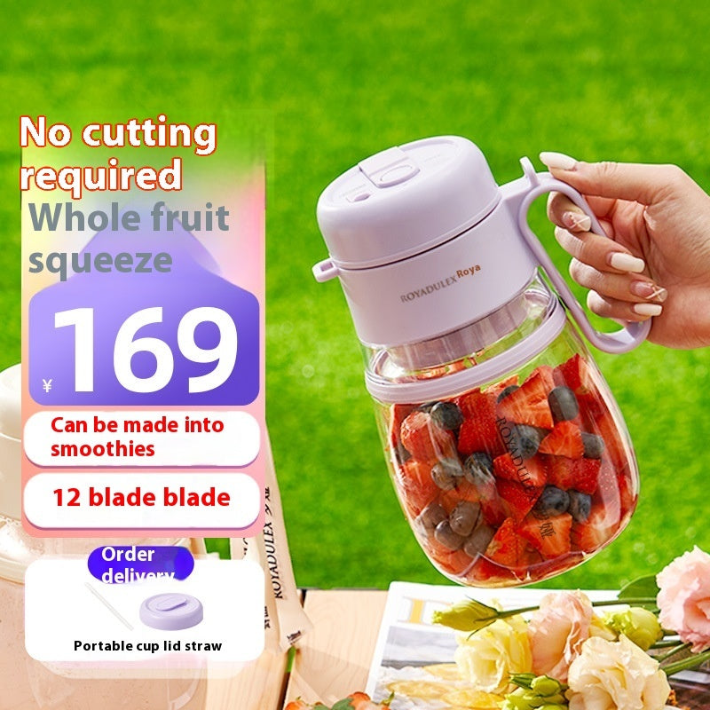 The Juicer Portable Charging Household Multi-function comes in two stylish color options: the 12 knives 1L big belly Cup twilight purple and the 12 knives 1L big belly Cup Cherry White. Made with high-quality silica gel liner, this juicer is durable and built to last.