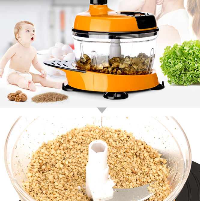 Equipped with various accessories, including a convenient handle, top cover, cyclone knife, container, and base, our meat grinder and vegetable cutter offers unmatched versatility. The handle provides a comfortable grip, ensuring smooth and effortless operation, while the top cover keeps your ingredients securely in place during the grinding or cutting process.