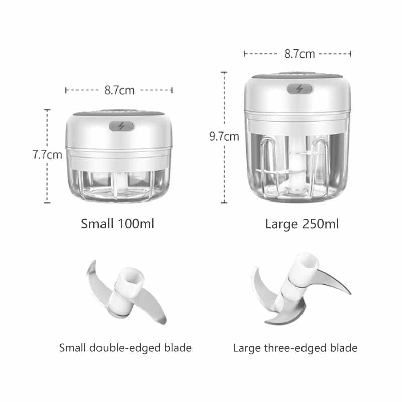 Upgrade your kitchen with our 100/250mL Mini Electric Garlic Chopper. Its modern simplicity and efficient functionality make it the perfect addition to any kitchen. Order yours today and experience the convenience of this durable and reliable kitchen tool.