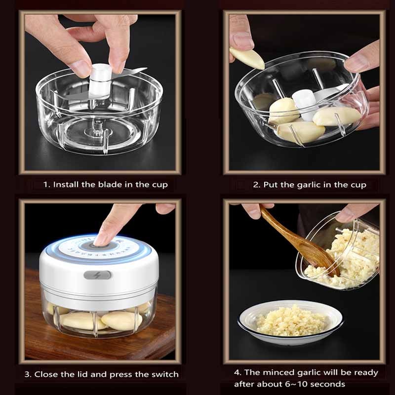 Not only is this kitchen tool ideal for chopping garlic, but it can also be used for ginger, chili, and other vegetables. Its versatility makes it a must-have for any kitchen. Whether you're preparing a quick meal or a gourmet dish, our Mini Electric Garlic Chopper will become your go-to kitchen companion.