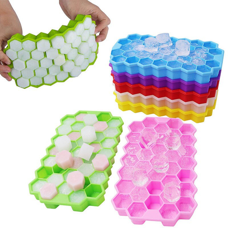 New Silicone Honeycomb Shape Ice Cube Tray Silicone Ice Cube Maker Mold With Lids For Party Bar Whiskey Cocktail Cold Drink Tool