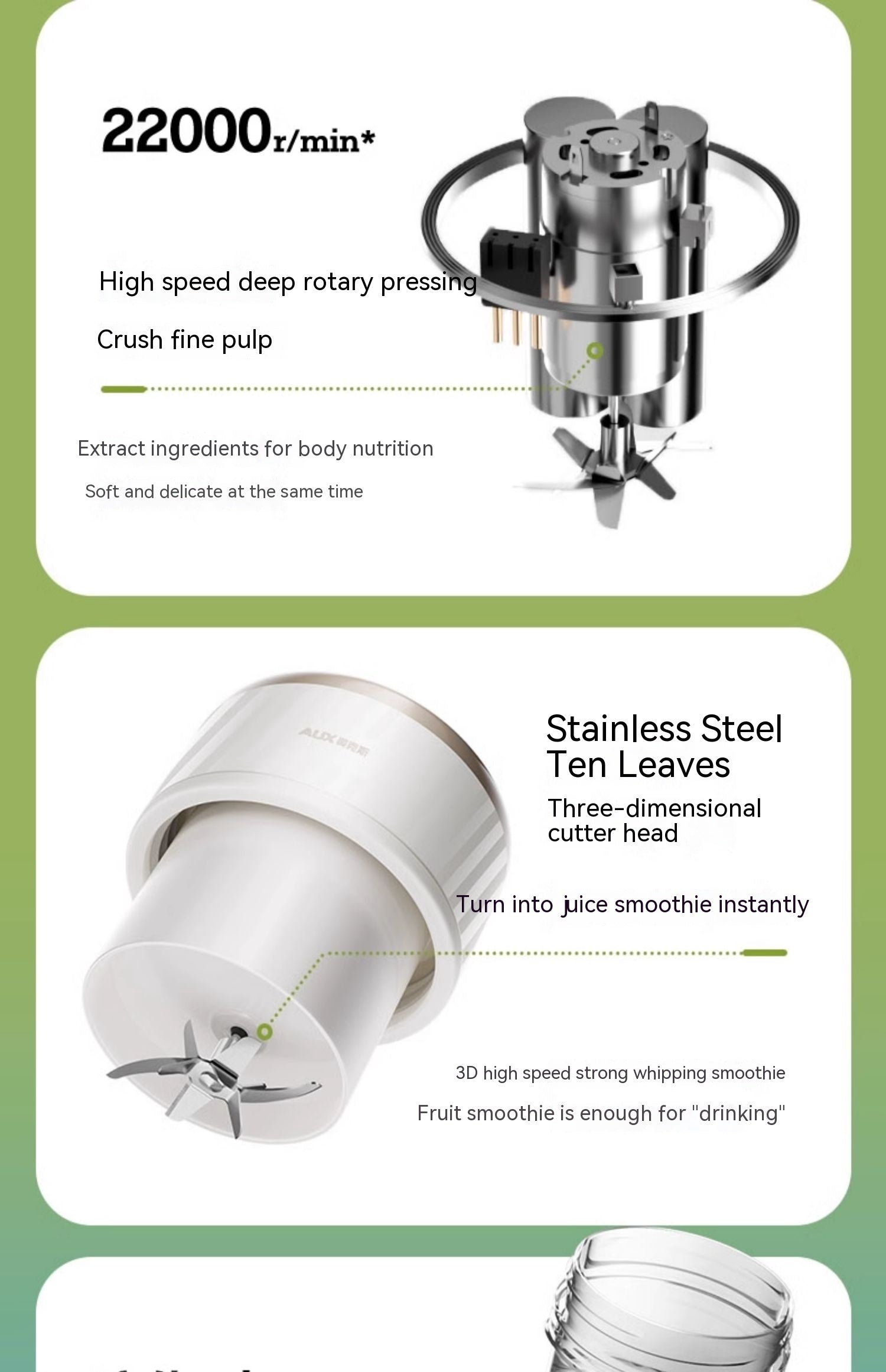 Material: 304 stainless steel cutter head, TRITAN cup body material