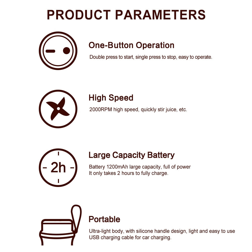 Invest in the Portable Size USB Electric Fruit Juicer Handheld Smoothie Maker Blender Stirring Rechargeable Mini Food Processor and enjoy the convenience of fresh and nutritious drinks wherever you go. Whether you're a health enthusiast, a busy professional, or a frequent traveler, this handheld blender is a must-have kitchen gadget. Experience the power of blending in the palm of your hand and elevate your smoothie game to new heights.