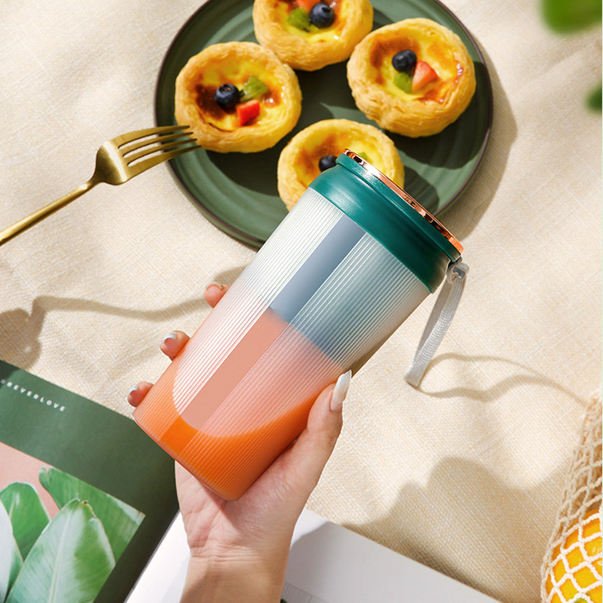 But that's not all! This juicer cup is rechargeable and portable, making it perfect for on-the-go juicing. Whether you're at home, in the office, or on a vacation, you can enjoy freshly squeezed juice anytime, anywhere.